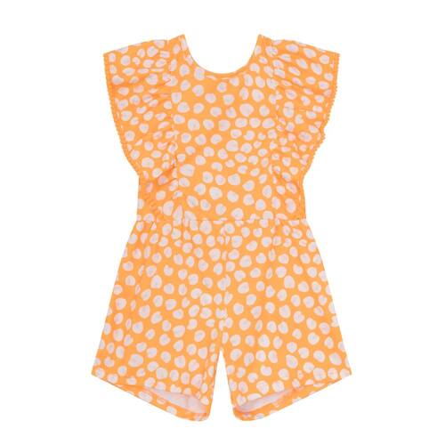 Este macaquinho infantil feminino, confeccionado em malha, é a escolha perfeita para as pequenas fashionistas neste verão. Com estampa rotativa animal print, que está em alta na moda, ele garante um visual moderno e estiloso. O recorte na cintura define a silhueta, enquanto os recortes com pregas nas mangas formam delicados babados, complementados por um charmoso barrado com pompons. Uma peça cheia de personalidade e conforto para momentos de diversão ao sol.