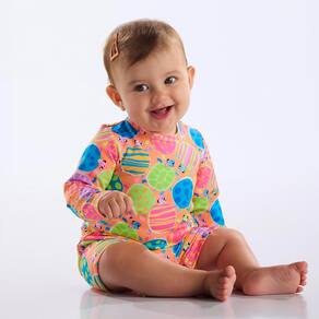 O macaquinho de praia para bebê menina tartarugas Up Baby foi desenvolvido para garantir proteção, conforto e liberdade de movimentos nos primeiros contatos com o sol, a praia e a piscina. Confeccionado em tecido macio e flexível, oferece proteção solar UV50+ com bloqueio de até 98% de raios UVA e UVB com tecnologia permanente (não sai nas lavagens), ajudando a proteger a pele sensível da bebê contra os raios solares.