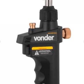 Ref.: 7299100000. Marca: Vonder. Material: Material do corpo: Bronze e plástico. Material da ponta: Aço inox. Tipo de ignição: Automática. Método de acionamento: Gatilho manual. Gás utilizado: Refil de MAPP ou refil de propano. Regulagem do gás: Manual. Temperatura da chama: Até 2.000°C. Capacidade de brasagem: Tubos de 1/4 a 1.1/4 polegadas. Capacidade de soldagem: Tubos de 3/4 a 4 polegadas. Profundidade: 2.00 cm. Altura: 20.00 cm. Largura: 7.00 cm. Massa aproximada (peso): 0,679 kg.