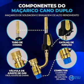 Este maçarico portátil é ideal para soldagem e brasagem em sistemas de encanamento, ar condicionado, aquecimento e refrigeração. Sua utilização é recomendada exclusivamente com gás Propano ou MAPP.