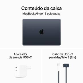 Apple MacBook Air 15" (Chip M3 da Apple, CPU de oito núcleos e GPU de dez núcleos, 8GB Memória unificada, 512 GB) - Meia-noite