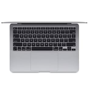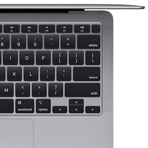 O novo MacBook Air tem desempenho duas vezes mais rápido, o dobro do armazenamento* e está disponível nas cores prateado, cinza-espacial e dourado. Ele vem com uma linda tela Retina com tecnologia True Tone, além de Touch ID, Magic Keyboard retroiluminado e trackpad Force Touch. Seu design icônico, fino e leve, é feito com alumínio 100% reciclado*** e a bateria dura 11 horas. É perfeito para você fazer de tudo, o dia todo**.
