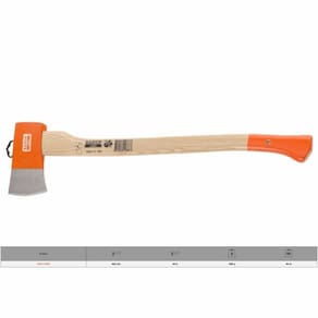 Machado para utilização geral : campismo, trabalho de jardinagem e limpeza ocasional de ramos. Cabeça em aço de alta qualidade, conforme DIN 7287, classe B. Cabo curvo em madeira de freixo, conforme DIN 5132, classe B, con uma cunha de fibra de carbono dentada.
