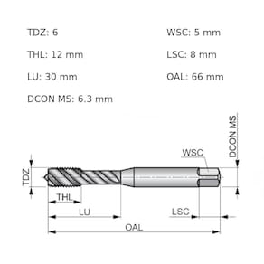 Produto: Macho máquina aço rápido canal helicoidal M6 x 1 mm E557M6 Marca: Dormer Descrição: O Macho Máquina Aço Rápido Canal Helicoidal M6 x 1 mm da Dormer é desenvolvido especialmente para oferecer superioridade em operações de rosqueamento, este produto é uma escolha ideal para profissionais que buscam resultados excepcionais em suas tarefas. Confeccionado em Aço Rápido HSS e com um acabamento brilhante, este macho apresenta uma durabilidade elevada e resistência contra o desgaste, garantindo uma vida útil longa mesmo sob uso intensivo. A hélice de 35° é otimizada para a remoção eficaz de cavacos em aplicações de furos cegos até 2xD, minimizando o risco de quebras e garantindo roscas limpas e precisas. Características: • Dimensões conforme padrão ISO 529, garantindo compatibilidade e padronização. • Tolerância de classe 6H, proporcionando roscas precisas e um ajuste ideal dos parafusos. • Chanfro de forma C e fio de rosca de semiacabamento, melhorando a inicialização da rosca e reduzindo o esforço manual. • Haste de 6,30 mm com encaixe quadrado de 5,00 mm, assegurando fácil montagem e manuseio segura na ferramenta elétrica. Com uso recomendado para aplicações de uso geral, o Macho máquina da Dormer adapta-se a diversos materiais, incluindo aços comuns e metais não ferrosos, proporcionando assim uma versatilidade sem igual.Especificações: Medida da rosca do macho mm : M6Passo da rosca: 1 mm Material do macho: Aço rápidoTipo do canal do macho: Canal helicoidalTolerância: 6HISO: 529.