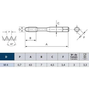 O Macho Máquina MA 04 x 0,7 DIN371 250/2 OSG é uma ferramenta de precisão desenvolvida para oferecer alta performance na roscagem de furos cegos, sendo a escolha ideal para operações que exigem acabamento de qualidade em materiais de cavaco longo. Fabricado em aço rápido com alto teor de vanádio, este macho alia durabilidade e resistência ao desgaste, garantindo um corte consistente e preciso mesmo sob condições de uso intenso. Seu design robusto é complementado por uma haste reforçada, cuja tolerância, classificada em H6, assegura que as dimensões permaneçam dentro dos padrões exigidos pela DIN 371, proporcionando resultados profissionais e confiáveis, com um passo de 0,7 e rosca grossa, o Macho Máquina MA 04 x 0,7 foi projetado para oferecer maior eficiência na remoção de cavacos, possibilitando a formação de roscas perfeitas em furos cegos. Seus três canais helicoidais, dispostos em canal helicoidal direito com ângulo de 35, promovem a evacuação rápida dos resíduos de material, reduzindo o risco de obstruções e contribuindo para a economia de tempo durante os processos de produção. O diâmetro da haste, medindo 4,5 mm, e o diâmetro do quadrado do macho, de 3,4 mm, foram meticulosamente definidos para otimizar a estabilidade e o desempenho da ferramenta durante a operação, garantindo um encaixe perfeito e uma roscagem eficiente, indicada para aplicações que demandam alta precisão, esta ferramenta é especialmente recomendada para o furo cego em materiais que produzem cavaco longo, onde o controle e a precisão são fundamentais para o sucesso da operação. É importante ressaltar que, para a utilização deste macho, é necessário adquirir separadamente uma broca com diâmetro de 3,3 mm, garantindo assim uma combinação ideal para a roscagem de alta qualidade. Em resumo, o Macho Máquina MA 04 x 0,7 DIN371 250/2 OSG se destaca no mercado por sua robustez, precisão e eficiência, sendo uma ferramenta indispensável para profissionais que buscam resultados superiores em suas operações de roscagem.