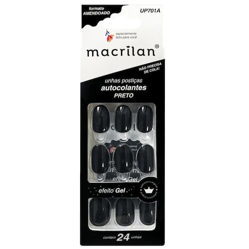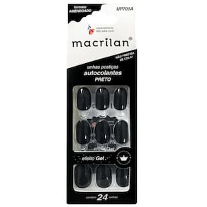 Macrilan Unhas Postiças Autocolantes Efeito Gel Preto Up701Aa (24 Unidades)