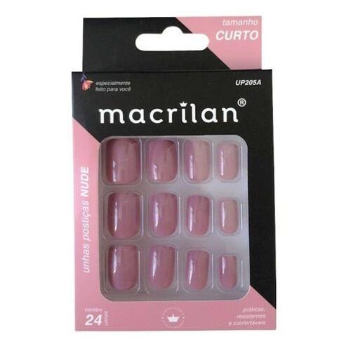 Macrilan Unhas Postiças Tamanho Curto Nude Up205a (24 Unidades) Tamanho - CURTO Unhas Postiças Macrilan especialmente desenvolvidas em uma versão colorida para uma aplicação rápida e segura. Indicadas para uso pessoal e profissional. Modo de usar: Prepare as unhas naturais Retire qualquer resíduo de esmalte das suas unhas com o removedor de sua preferência;Lixe o corpo da sua unha, retirando qualquer tipo de ondulação que dificulte a aderência. Prepare as unhas postiças Macrilan Selecione os tamanhos que mais se aproximam de suas unhas naturais. Lixe as laterais e a borda para um encaixe ideal;Repita o processo em todas as unhas;Aplique a cola de unha postiça Macrilan em suas unhas naturais;Fixe a unha postiça e pressione por 15 segundos. Composição: Plástico ABS.
