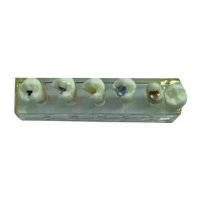 - 5 Pré-molares de resina acrílica pintados, cada um medindo 3,8 cm de comprimento, 1,0 cm de largura e 1,3 cm de altura.