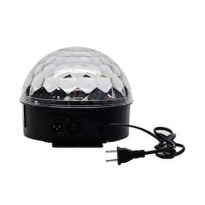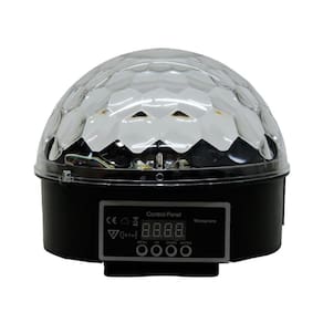 Composto por 6 LEDs de 3W cada, um motor para rotação dos feixes de luz e um acrílico com lentes óticas refratadas de alta qualidade, espalhando as cores à 180, proporcionando um longo alcance, feixes multiplicados e definidos (visto na fumaça).