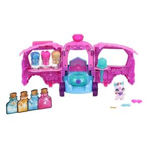 VeÃculo encantado que transforma-se em umlindo playset com diferentes brincadeiras para serem descobertas.