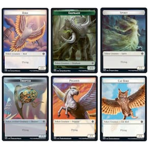 O conjunto inclui: 1 baralho verde-branco de 100 cartas de Magic, com uma carta de comandante lendário de arte alternativa gravada em folha e 99 cartas não-folhadas, incluindo terrenos. 10 fichas de dois lados. Uma caixa de baralho. Contadores punchout. Para novos jogadores, oferecemos conselhos de estratégia, regras e um cartão de referência que explica cada passo do seu turno. Magic é um jogo de cartas de estratégia emocionante e nossos decks são presentes incríveis para adolescentes e fãs de jogos de cartas colecionáveis. Transforme-se em um mestre estrategista e lidere seu exército à vitória com o deck Token Triumph!