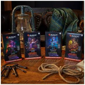 Este pacote contém os 4 decks de comandante de Outlaws of Thunder Junction Quick Draw, Desert Bloom, Grand Furceny e Most Wanted. Cada conjunto inclui um baralho pronto para jogar com 100 cartas de Magic, 2 cartas lendárias foil tradicionais, 98 cartas não foil, 10 fichas dupla face, 1 caixa de baralho que pode conter 100 cartas com protetores, 1 roda da vida, 1 encarte de estratégia e 1 carta de referência. Prepare se para uma batalha épica e livre para todos no mundo fronteiriço de Thunder Junction, juntando se a uma tripulação de desesperados mortais, planejando assaltos descarados e derrotando seus bandidos rivais. Com 40 cartas de comandante nunca antes vistas, obtidas ao adquirir todos os 4 baralhos de Outlaws of Thunder Junction 10 em cada baralho, incluindo 2 criaturas lendárias metalizadas tradicionais, 1 das quais sem fronteiras , você terá acesso a jogadas estratégicas e sociais que tornarão suas batalhas multijogador épicas. Além disso, cada baralho vem com um pacote de amostra de booster de colecionador de 2 cartas contendo 2 cartas altborder do conjunto Outlaws of Thunder Junction, incluindo 1 raro ou mítico raro e pelo menos 1 carta metalizada tradicional.