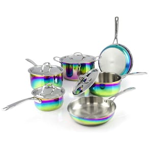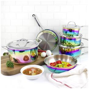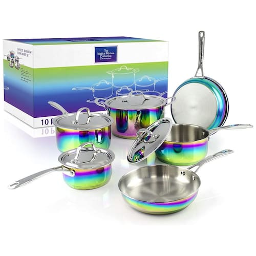 ACABAMENTO IRIDESCENT RAINBOW ÚNICO Deixe as cores do arco íris permitirem que você expresse sua criatividade culinária incorporando a Magical Kitchen Rainbow Collection. Exclusivos da e raros de encontrar nas lojas, esses atraentes potes e panelas de arco íris atualizam instantaneamente sua cozinha lindamente você pode até exibi los quando não estiverem em uso AÇO INOXIDÁVEL PREMIUM SEM REVESTIMENTOS TÓXICOS Projetado usando apenas aço inoxidável e titânio de qualidade premium que podem suportar o desgaste do uso diário sem efeitos no belo acabamento espelhado do arco íris. Passando por rigorosas inspeções da FDA e verificação de segurança antes de ser embalado, nosso conjunto de panelas é sem grafite, sem cádmio, sem ftalato, sem Teflon, sem BPA e ecologicamente correto. MESMO DISTRIBUIÇÃO DE CALOR E INDUÇÃO Fornecendo uma distribuição de calor completa e uniforme durante todo o processo de cozimento, este conjunto de 5 panelas e frigideiras está pronto para indução e fácil de lavar. Equipado para resistir a palha de aço, sabões agressivos, imersão e altas temperaturas do forno, o recipiente de aço inoxidável resistente a arranhões garante a máxima retenção de calor, eliminando pontos quentes para uma experiência de cozimento mais fácil Marca: Não Informado