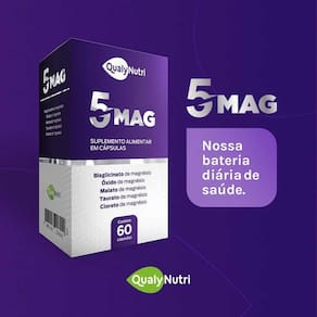 O que é o 5mag, qualynutri O 5mag, qualynutri é um suplemento alimentar que contém uma fonte poderosa de magnésio, com 5 tipos diferentes desse mineral essencial para o bom funcionamento do corpo. Formulado em cápsulas, o 5mag oferece uma maneira prática de complementar a alimentação, promovendo diversos benefícios à saúde. Composição do 5mag: Este suplemento contém cinco formas diferentes de magnésio, permitindo uma absorção eficiente e atuando em várias funções do organismo. O magnésio é fundamental para a formação óssea, o funcionamento muscular e o metabolismo energético. Para que serve o 5mag O 5mag é indicado para complementar a ingestão diária de magnésio, contribuindo para a saúde óssea, o bom funcionamento muscular e o equilíbrio do metabolismo energético. É ideal para quem busca um suplemento que auxilie na prevenção de deficiências desse mineral essencial, especialmente em pessoas com maior demanda de magnésio. Benefícios do 5mag: Auxilia na formação óssea e no fortalecimento dos ossos; Contribui para o funcionamento adequado dos músculos; Melhora o metabolismo energético, promovendo mais disposição; Formulado com cinco tipos de magnésio para melhor absorção e eficácia; Produto sem glúten. Como devo usar o 5mag Recomenda-se ingerir 2 cápsulas por dia, junto das principais refeições ou conforme orientação do profissional de saúde responsável. Advertências: Este produto é recomendado para uso adulto; Em caso de dúvida, consulte um médico ou nutricionista antes de iniciar o uso; Mantenha o produto em local fresco e seco, longe da luz e umidade; Este produto não contém glúten, sendo seguro para pessoas com restrições alimentares. este produto não é um . não exceder a recomendação diária de consumo indicada na embalagem. mantenha fora do alcance de crianças. Marca: Não Informado Ean: 7895143226942