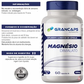 Itens do anúncio - 1 unidade do produto: magnesio dimalato 100% puro super mineral 60 cápsulas - grancaps Total: 60 cápsulas por frasco. Marca: Grancaps Ean: 7898704671335