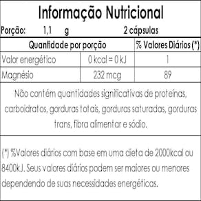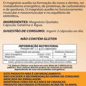 Na forma de quelato tem sua absorção muito superior ao magnésio comum (cloreto).