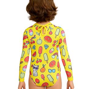 Maiô Body Manga Longa Com Proteção Solar Uv 50 Menina Sereia - Amarelo - 2