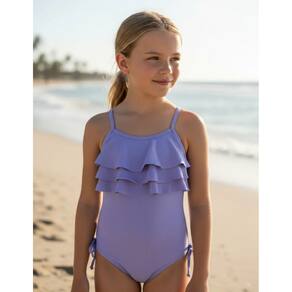 O Maiô Infantil Feminino de Alça com Babado é a escolha perfeita para unir conforto, estilo e proteção nos dias de sol. Com coloração roxa e delicados babados na parte frontal, o modelo traz um visual charmoso e alegre, ideal para crianças.