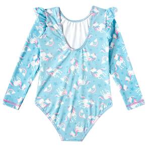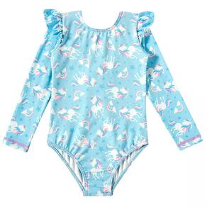 O Body Praia Infantil Manga Longa Unicórnios Azul Tip Top é ideal para as bebês e meninas pequenas aproveitarem a praia com todo estilo e segurança. Possui proteção solar FPS 50+ permanente, tem design moderno e confecção em tecidos leves. O tamanho 6-12M (G) possui abertura entrepernas, para facilitar a troca de fraldas.