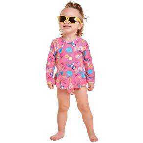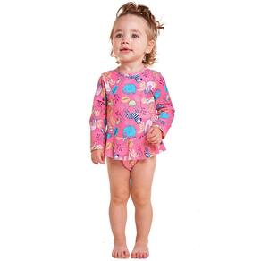 Maiô Manga Longa Bebê e Infantil Safari Rosa Tip Top - Rosa - 3
