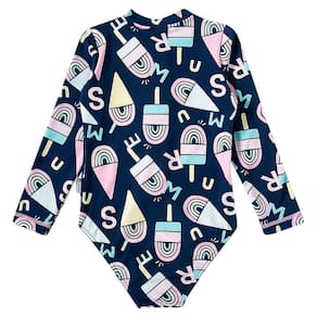 O Body Praia infantil Sorvetes Marinho da Tip Top é ideal para o dia a dia na praia ou na piscina. Seu tecido é suave e confortável, e seu design moderno e divertido é perfeito para as meninas. Além disso, possui proteção UV, 50+ permanente que ajuda a manter a pele das pequenas segura durante todas as brincadeiras ao sol. O fechamento frontal com zíper, torna a peça ainda mais prática e bonita.