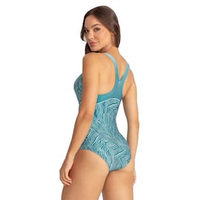 Possui costas cavadas e decote em V, complementado por recorte no busto que proporciona um ajuste perfeito ao corpo. Apresenta estampa exclusiva e elegante, que adiciona dinamismo e modernidade ao design. Confeccionado em tecido de alta elasticidade, respirabilidade e proteção UV50+, ideal para atividades aquáticas com total conforto e segurança. Ideal para natação e hidroginástica!