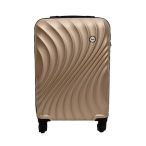 Malas para viagem fabricadas com superficie exterior de folhas plasticas sendo: 100%em abs rigido injetado , acompanhada de carrinho embutido fabricado dferro rodas simples que giram 360 graus, cadeado fixo e contendo: forro interno confeccionado em 100% de fibras sinteticas de nylon poliamida - um compartimento interno para roupas usadas e tiras internas para prender roupas, duas alcas de mao retratil de material rigido pp polipropileno rigido -tamanho: 24 - champagne -marca: ika -modelo: avalon - sendo: champagne