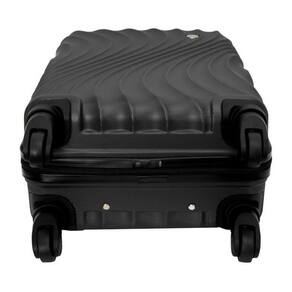 Malas para viagem fabricadas com superficie exterior de folhas plasticas sendo: 100%em abs rigido injetado , acompanhada de carrinho embutido fabricado dferro rodas simples que giram 360 graus, cadeado fixo e contendo: forro interno