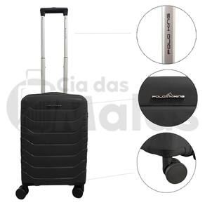 Mala Bordo de Viagem Polipropileno rodas 360 Polo King Cor: Preto Mala Bordo de Viagem Polipropileno PProdas 360 Polo King Executiva Produzido em material sintético ABS, destacando-se pela sua impermeabilidade, com forro em poliéster.