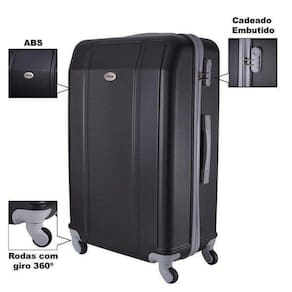 Malas em ABS, material de qualidade superior. Cadeado embutido. 4 Rodas com giro 360ºDivisória interna. Elástico interno e divisória interna com zíper. Tamanho: M: 60(A) x 25(P) x 41(L) cm cor: PRETA garantia do fornecedor: 3 Meses