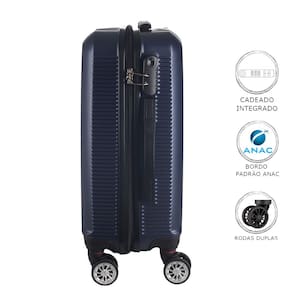 Mala de Bordo Pequena para Viagem ABS Denlex MA1121 Cadeado Integrado Rodas Duplas Giro 360º