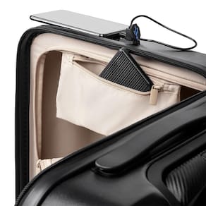 A mala também vem com uma saída USB, a solução ideal para carregamento de smartphones, garantindo que você esteja sempre conectado. Este detalhe inovador é perfeito para quem passa longas horas viajando e precisa manter seus dispositivos eletrônicos sempre prontos para uso.