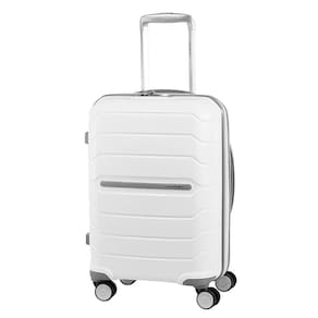 Cor: Branco Material: Polipropileno Cadeado TSA acoplado 4 rodas duplas com giro 360 Alça carrinho com botão liberador Sistema de carrinho com ajuste de posição Alça superior e lateral Cintas elásticas para maior organização Painel divisor com zíper 2 Bolsos internos Identificador de bagagem Capacidade: 35 Litros