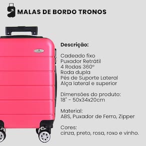 MALA DE BORDO TRONOS ROSA 4 RODAS 360 GRAUS TAMANHO 18