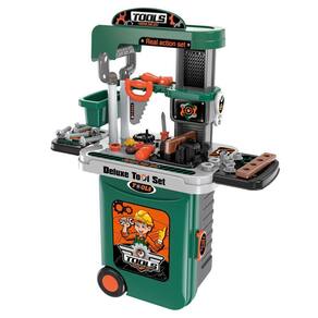 Feita em plástico resistente, essa bancada de ferramentas é durável e segura para as crianças brincarem. Ela possui uma função 3 em 1, com duas bancadas diferentes: uma menor, para atendimentos expressos, e outra maior para se transformar em uma bancada de serviço completa. Além disso, ela possui um formato de mala de rodinhas, sendo fácil de transportar para qualquer lugar.