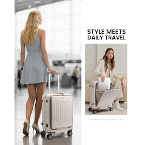 -?COMPARTIMENTO FRONTAL COMPATÍVEL COM NOTEBOOK?Esta bagagem de mão com compartimento para laptop possui uma capa acolchoada para laptop de 15,6", um bolso para tablet de 9,7", compartimentos de malha e organizadores de documentos, tudo no bolso frontal. Não é necessário abrir toda a sua bagagem rígida na segurança. Mantenha-se organizado e eficiente durante toda a viagem.