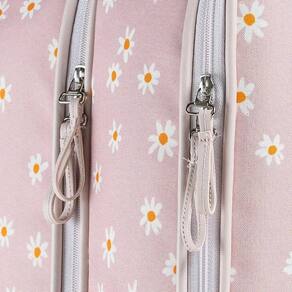 - Abertura superior com zíper duplo e espaço amplo para roupinhas e acessórios
