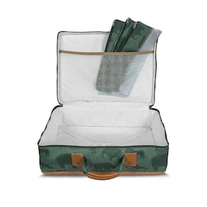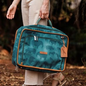 A Mala Vintage Safari é a companheira ideal para a ida à maternidade e futuras viagens com o seu filhote! Com um lindo tom de verde, a estampa safari se chama atenção de longe. Com um amplo compartimento interno, essa mala oferece espaço para acomodar todos os itens essenciais do bebê, como roupas, fraldas e mantas. Os elásticos internos garantem a organização e segurança dos pertences durante viagens ou passeios. A mala acompanha três saquinhos organizadores com a mesma estampa que ajudam no planejamento da ida à maternidade. O bolso frontal conta com uma tela organizadora e é ideal para guardar os documentos do bebê. Com a Mala Vintage, mamães e papais terão a união perfeita entre estilo vintage e funcionalidade moderna para uma experiência de maternidade mais organizada e encantadora!