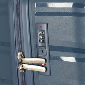 Equipada com cadeado embutido com segredo numérico. Divisórias internas para organização dos pertences e tiras elásticas para manter as roupas no lugar durante o transporte. Cor: grafite.