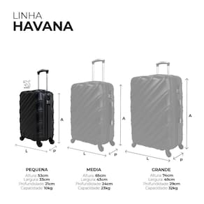 Conheça a mala de viagem 10 kg da linha Havana, que une funcionalidade e estilo moderno. Resistente e durável, com design ondulado que a torna mais resistente a impactos, rodas 360 e sistema de segurança, é a escolha ideal para suas viagens.