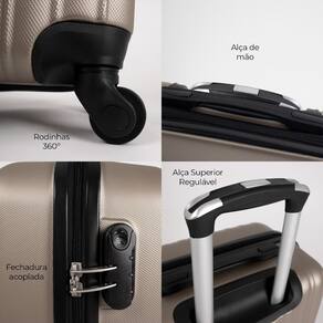Fabricada em ABS, esta mala é resistente e durável, equipada com 4 rodas 360 que proporcionam fácil manobrabilidade. Possui cadeado fixo com senha para segurança, carrinho com ajuste de altura para maior conforto e alça de mão. No interior, conta com cinta elástica e divisória em zíper para manter tudo organizado. Além disso, a mala é aprovada pela Agência Nacional de Aviação Civil (ANAC) para embarque, tornando-a a escolha perfeita para suas viagens.