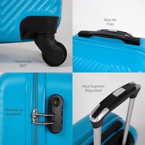 Fabricada em ABS, esta mala é resistente e durável, equipada com 4 rodas 360 que proporcionam fácil manobrabilidade. Possui cadeado fixo com senha para segurança, carrinho com ajuste de altura para maior conforto e alça de mão. No interior, conta com cinta elástica e divisória em zíper para manter tudo organizado, a escolha perfeita para suas viagens.