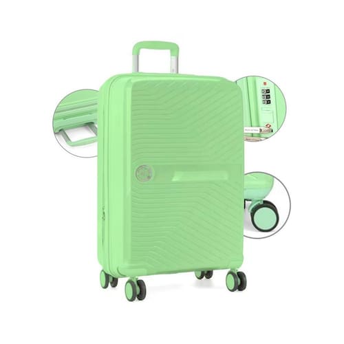 A mala é confeccionada em polipropileno, um material resistente e durável.