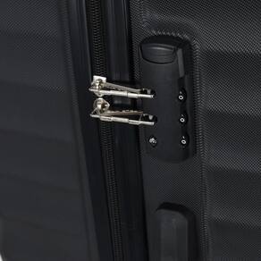 Equipada com cadeado embutido com segredo numérico. Divisórias internas para organização dos pertences e tiras elásticas para manter as roupas no lugar durante o transporte. Cor: grafite.