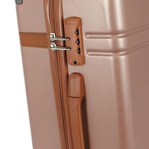 Equipada com cadeado embutido com segredo numérico. Divisórias internas para organização dos pertences e tiras elásticas para manter as roupas no lugar durante o transporte. Material: ABS / Poliéster. Alça de mão superior e lateral. Alça carrinho retrátil com regulagem de altura. Cintas elásticas internas para organização. Bolso interno com fechamento em zíper. 4 rodas duplas com giro de 360.