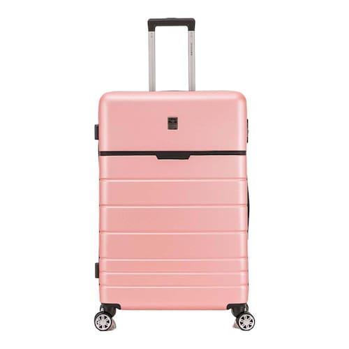 Mala de Viagem Bruxelas Rígida 360 Santino G - ABEV504G Cor: Rose Gold Mala de Viagem Bruxelas Rígida 360 Santino G - ABEV504G A malas Bruxelas Santino, tem um design arrojado, imponente e com alta resistência. Se destaca por seu visual atual e contemporâneo. Criada com a mais alta tecnologia e material de alta resistência a impactos. Confeccionadas em ABS, cadeado numérico acoplado, alça de mão, rodas duplas multidirecionais 360º e alça ergonômica com botão de liberação. O tamanho grande traz alça lateral e pés de apoio. Na parte interna amplo espaço, cinta elástica, painel divisor com zíper. Em cada viagem você poderá comprovar sua grande capacidade de armazenamento, resistência, comodidade e estilo.