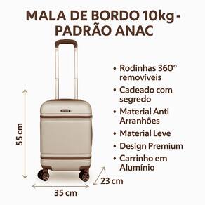 Mala de Viagem de Bordo P/ 10kg em Abs com Rodinhas 360º Removíveis e Leve - Padrão Anac - Qualis - Cor: Champanhe MB001