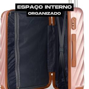Características: Material: abs Alça de mão superior e lateral reforçadas e emborrachadas Alça carrinho retrátil com regulagem de altura Cintas elásticas internas organizacionais Cadeado com tripla combinação Logo na parte frontal Bolso interno com fechamento em zíper 4 rodas com giro 360