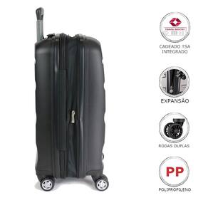 - Malas em Polipropileno, material de alta qualidade. - Cadeado TSA acoplado. - Rodas Duplas com Giro 360º - Mala com zíper expansivo. - Elástico interno e divisória interna com zíper.