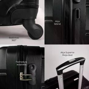 Fabricada em ABS, esse mala é resistente e durável, equipada com 4 rodas 360 que proporcionam fácil manobrabilidade. Possui cadeado fixo com senha para segurança, carrinho com ajuste de altura para maior conforto e alças de mão e lateral.